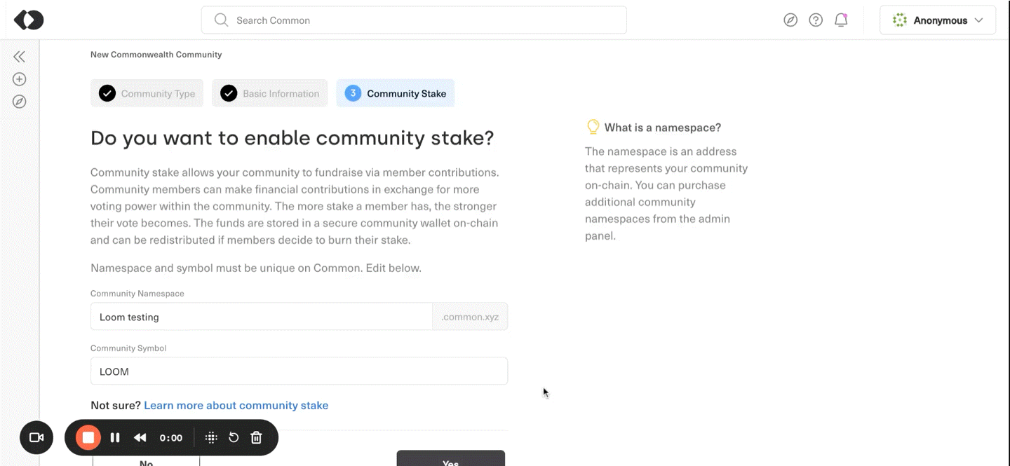 Create a community on Common today, and enable community stake.