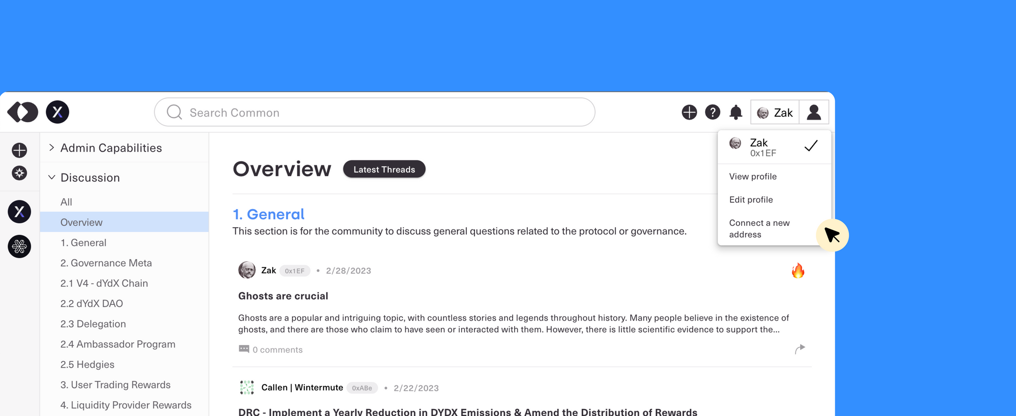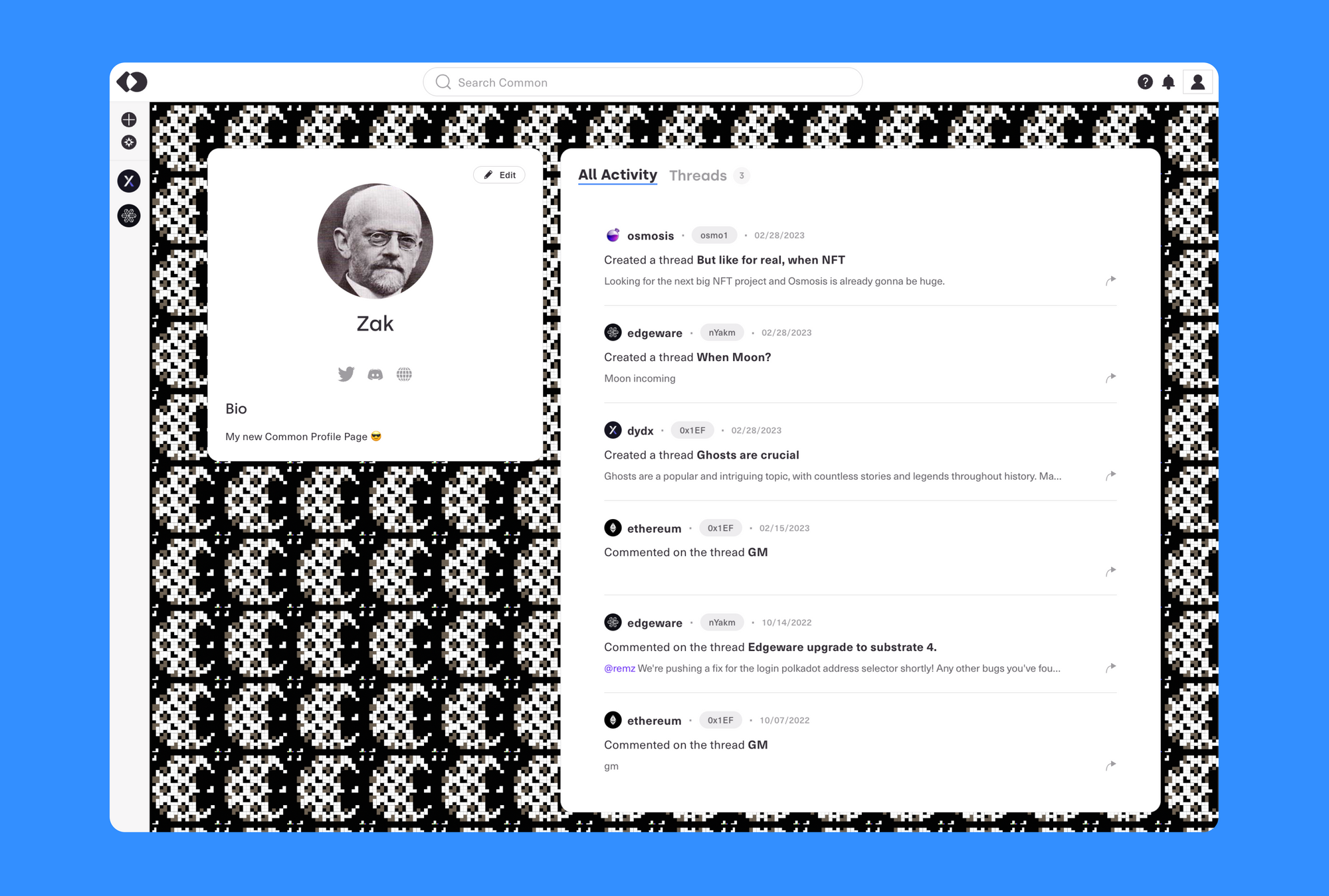 We will continue to experiment with ways to make the profile your home in crypto. Whether you’re a governance super-delegate, an NFT collector, or DeFi Degen, we want to let you showcase your interests. We’ll be experimenting with rolling out features such as badges for participating in community discussion, options to display NFTs that carry personal significance, and customized actions users can take to participate further in their community. We’re excited about these features and can’t wait to continue to make Common a seamless, personalized, multi-chain experience for each user.