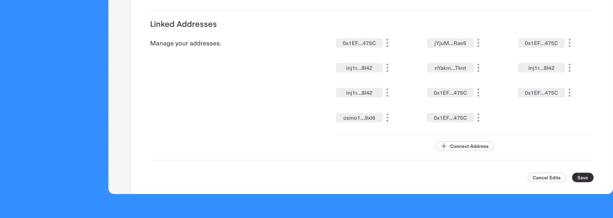 One profile can own multiple addresses across chains